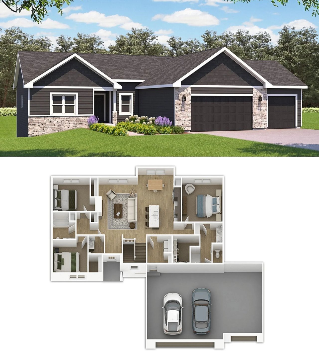 Siding, brick, stone, or stucco is completed.